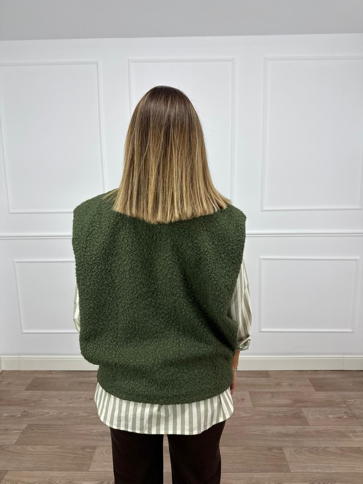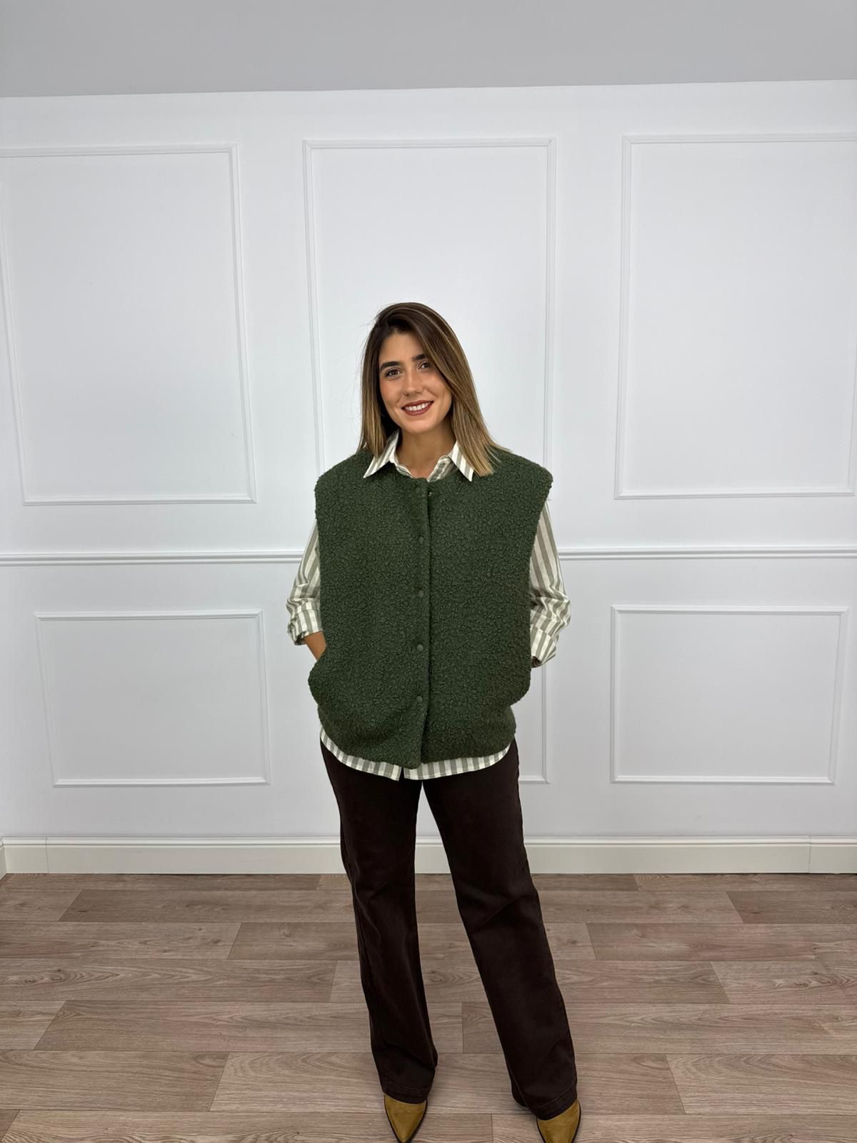 Chaleco de borrego en verde con bolsillos